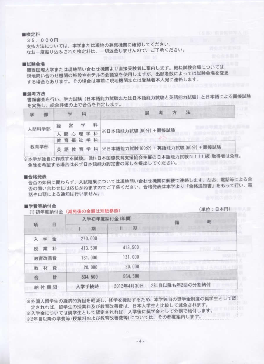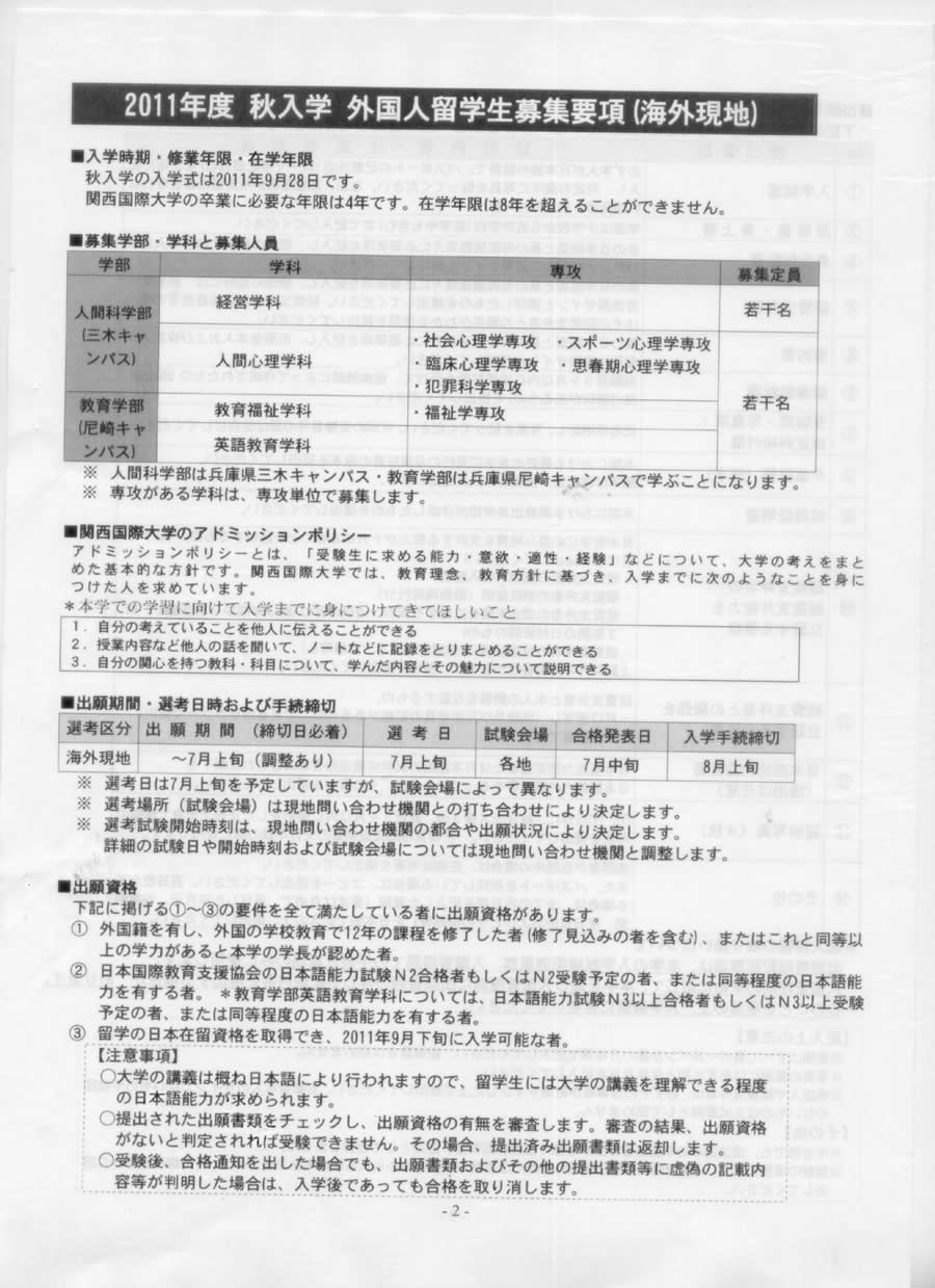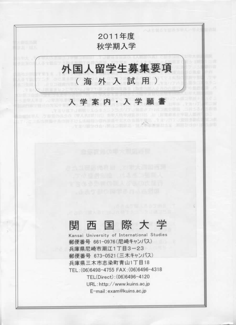 關西(xī)國(guó)際大(dà)學外(wài)國(guó)人(rénφ∑δ )留學生(shēng)募集要(yào)項