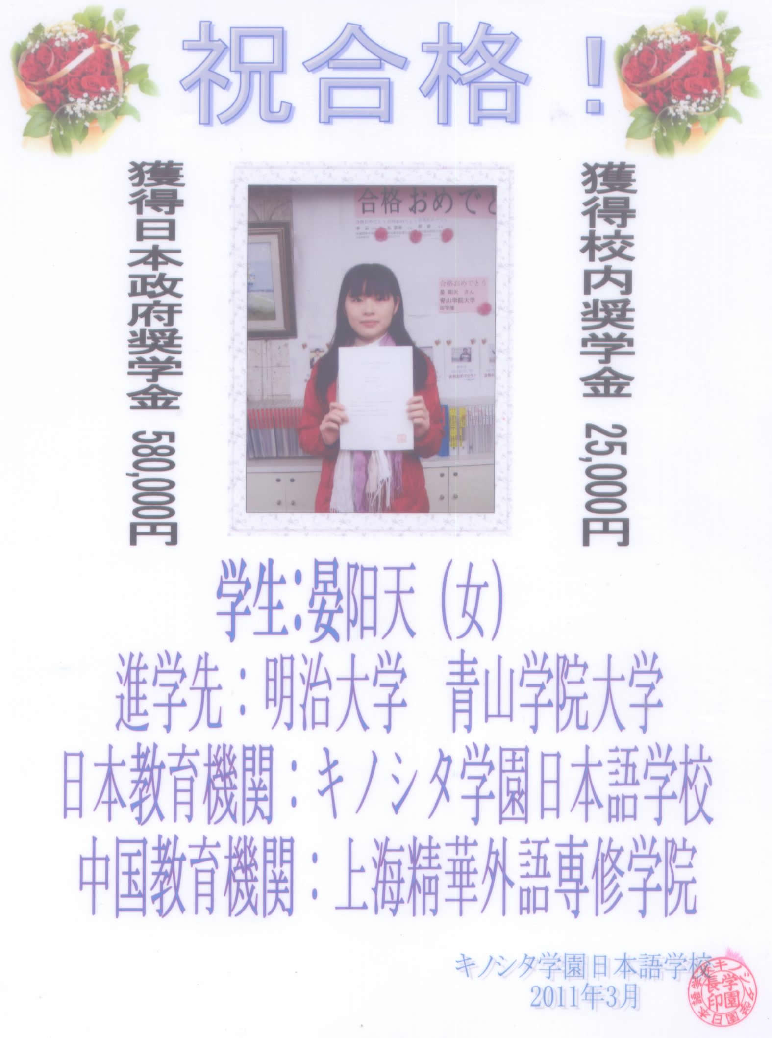 祝賀我院學生(shēng)晏陽天考進明(míng)治大(dà)學∑♣